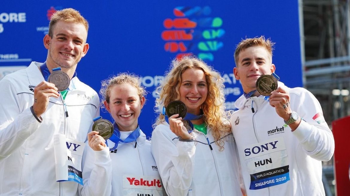 A legfrissebb vizes világbajnokságon a magyar nyílt vízi úszó csapat kiemelkedő teljesítményt nyújtott, egyedülálló módon a váltóversenyben bronzérmet nyertek. A csapat tagjai között található Fábián Bettina, Mihályvári-Farkas Viktória, Rasovszky Kristóf és Betlehem Dávid, akik együtt érték el ezt a megérdemelt sikert.
